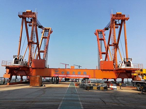 800噸架梁起重機采用雙臂架桅桿式結構,在集團公司50噸、60噸、 70噸、120噸、400噸桅桿式起重機的基礎上向前大大地邁進了一步,是集團公司有史以來最大的桅桿式起重機,也是目前國內最大規(guī)模的變幅式架梁起重機。800噸架梁起重機既可吊裝箱梁,又可吊裝桁梁,安裝對位靈活、精確,特別適用于箱桁組合梁段的吊裝。